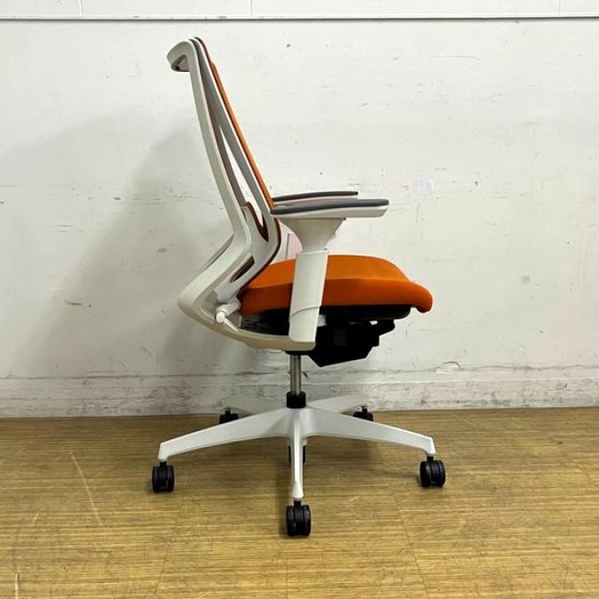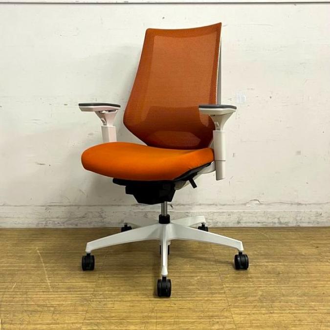 【在庫入替セール】【1脚限定入荷】コクヨ デュオラチェア メッシュタイプ 可動肘 タンジェリン(オレンジ)×ホワイトフレーム ランバーサポート付き- 名古屋千種店
