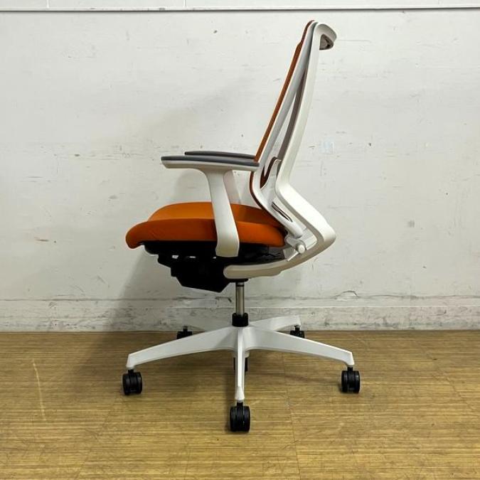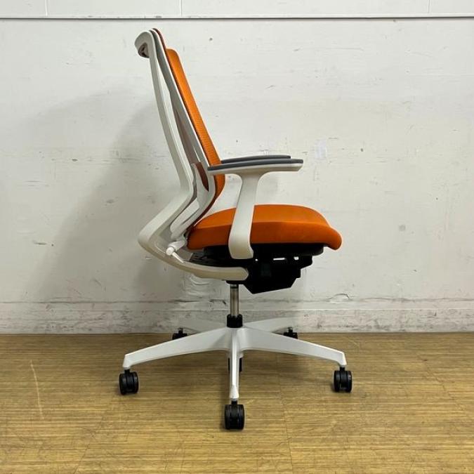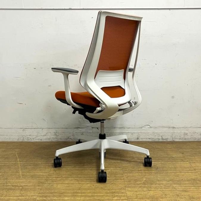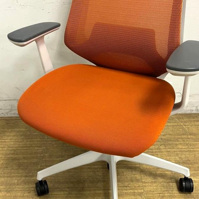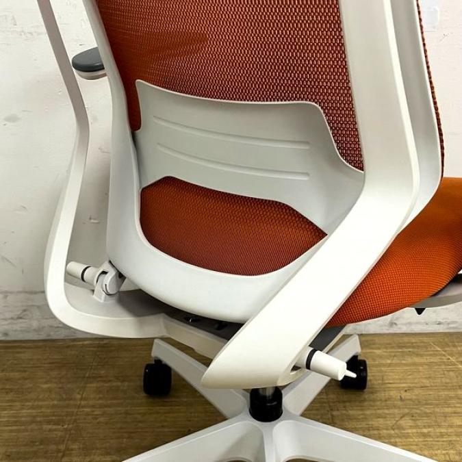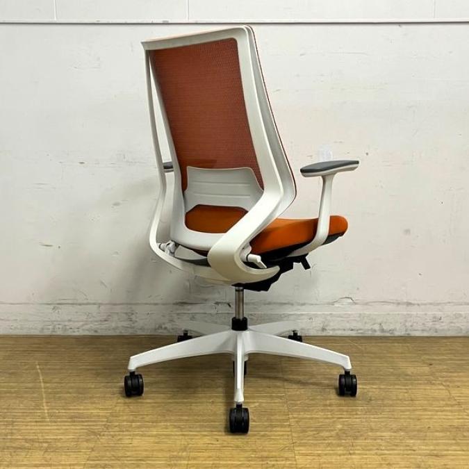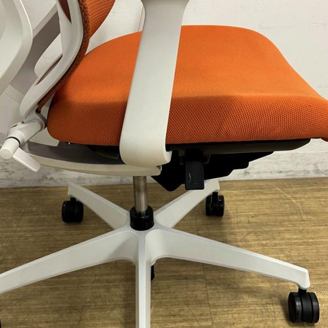 コクヨ デュオラチェア メッシュタイプ 固定肘 タンジェリン(オレンジ)×ホワイトフレーム ランバーサポート付き- 名古屋千種店