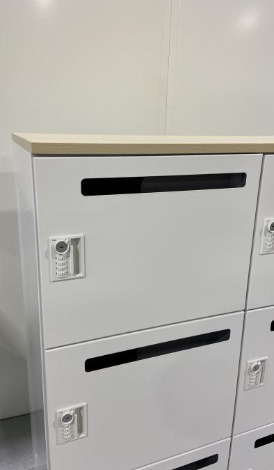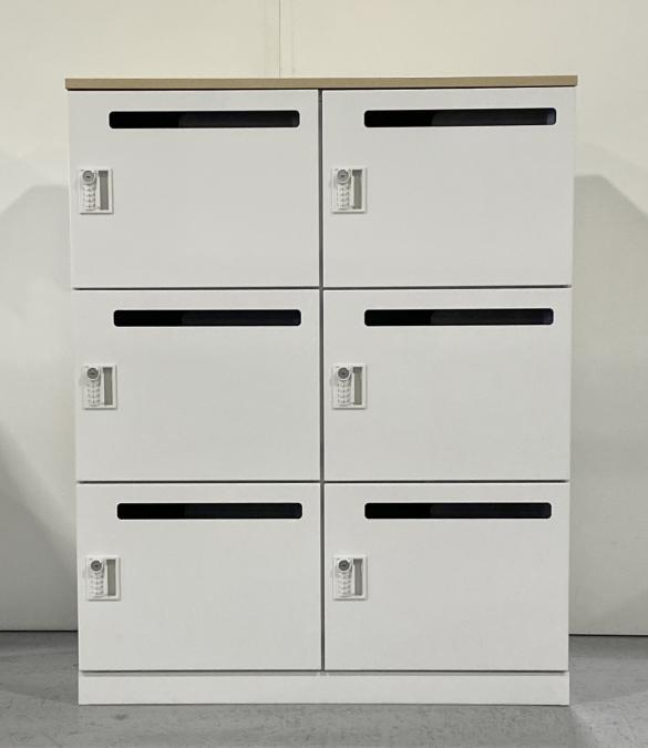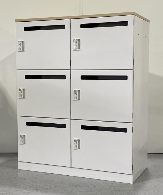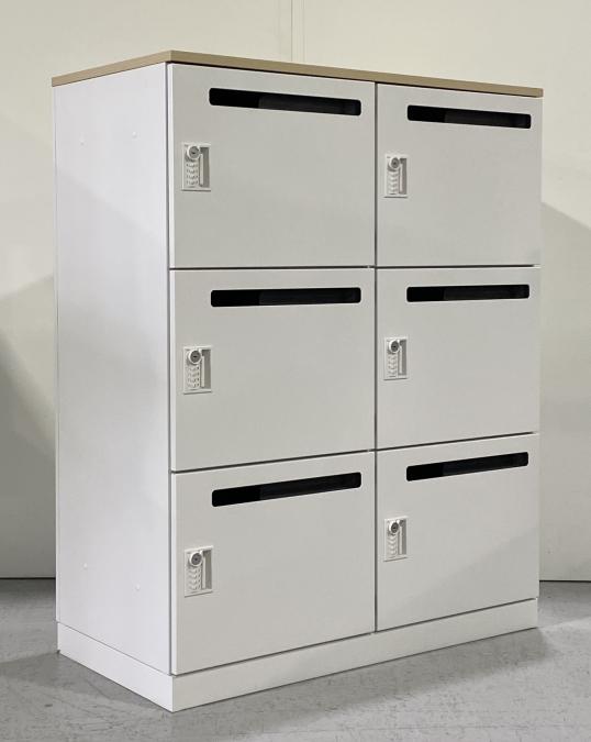 【ダイヤル錠なので鍵の持ち運びが必要なし!増員にもオススメ!】■ウチダ製 エルレージ 6人用パーソナルロッカー ■ホワイト×天板ナチュラル ■ダイヤル錠 ■メール投入口- 新大阪店