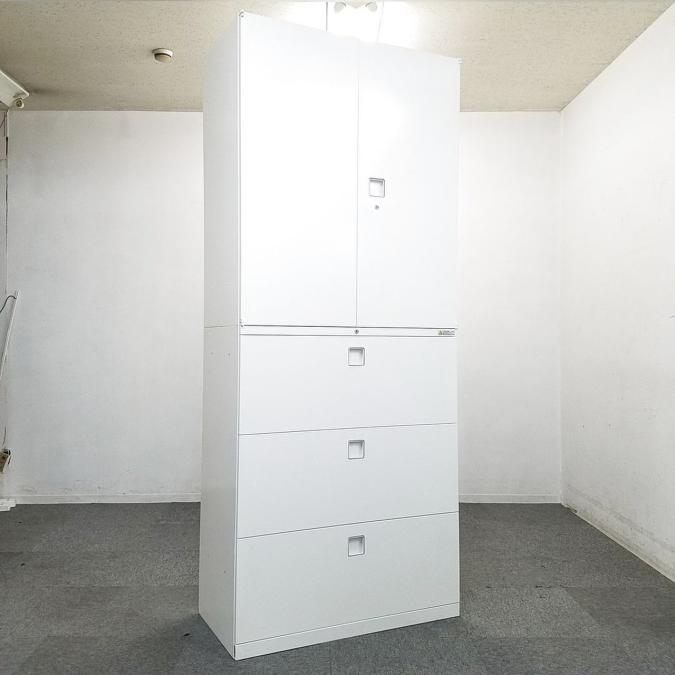 【オフィスの書類をスッキリ整理!大人気レクトラインの上下書庫セット!】■オカムラ(okamura)製 レクトラインシリーズ 両開き+3段ラテラル 書庫セット H2150㎜ ■シリンダー錠 ■ホワイト
