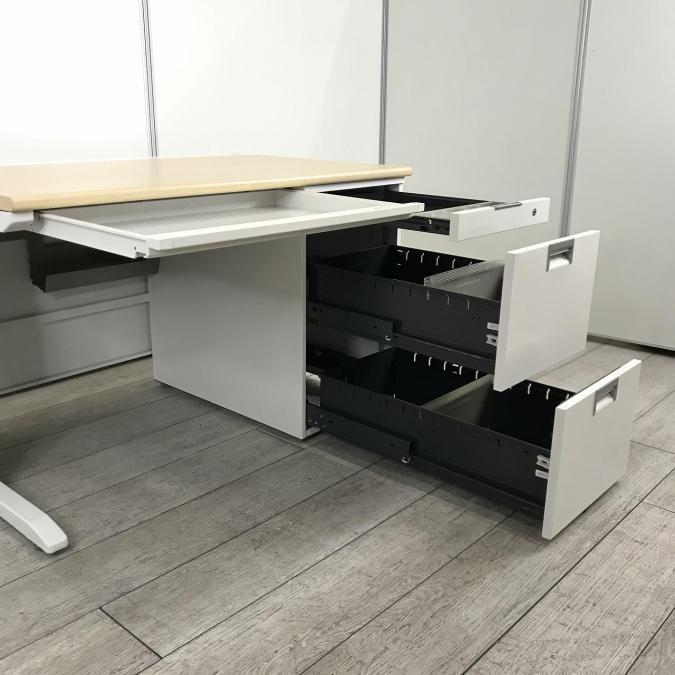 オーソドックスな片袖タイプは平デスクに単体ワゴンを組み合わせるよりも、