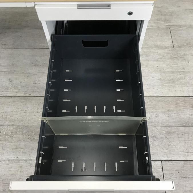 中段は書類やファイル等、下段はA4サイズ対応の引出で資料などの保管に便利です。