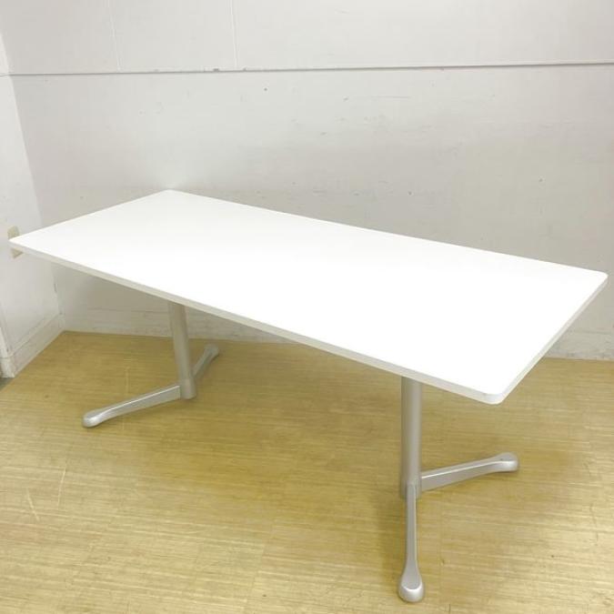 オカムラ アクティアフェロー ホワイト天板×シルバー脚 キャスター付き W1800/D750 4~6名掛け想定- 名古屋千種店