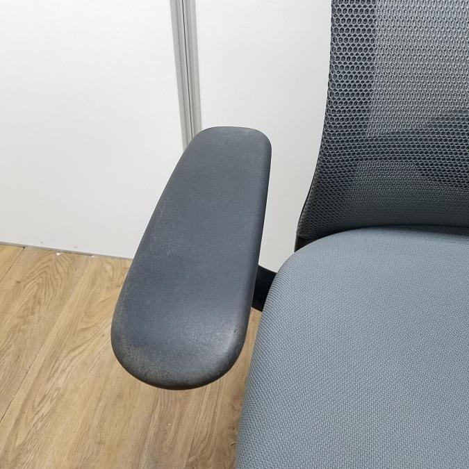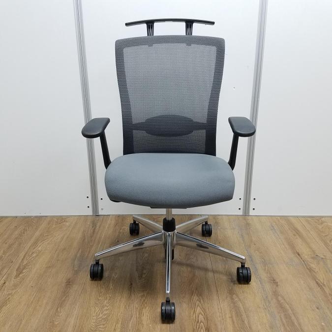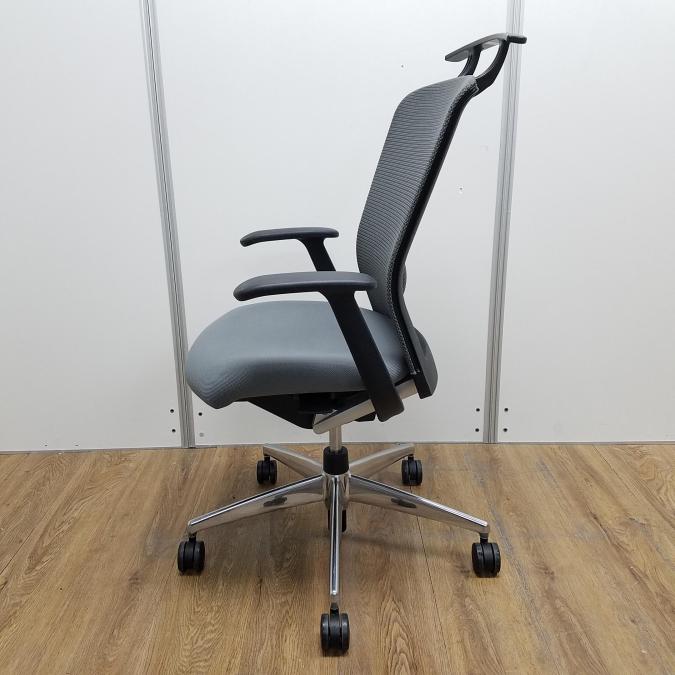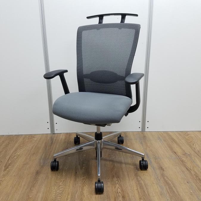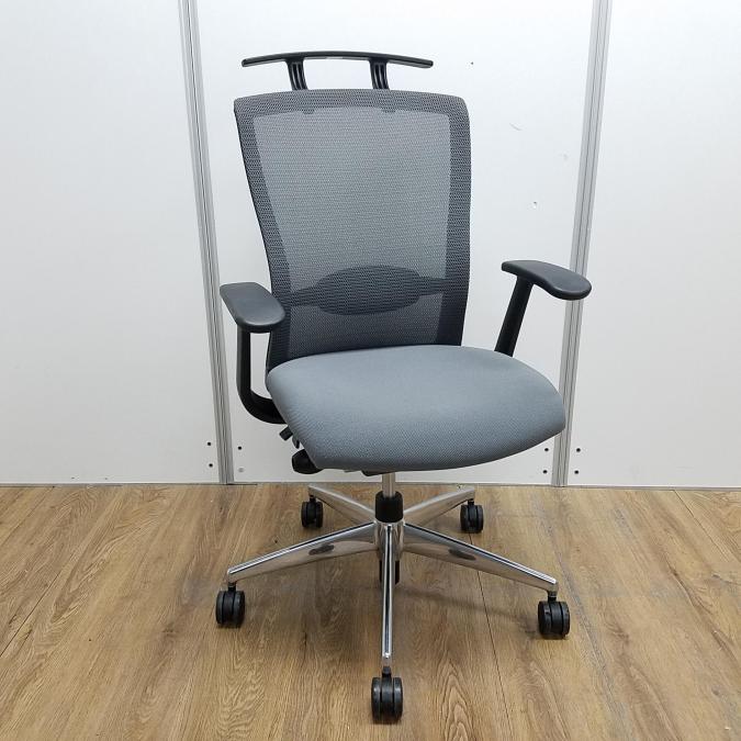 【商品入替のため、残り1脚限り】コクヨ製 フォスターエトスシリーズ ストレートグレー 固定肘 背面メッシュ コートハンガー付 ランバー付 上半身の動きにフィット!体を包み込むメッシュ張地! 肘付きハイバックチェア!!- 京都東寺店