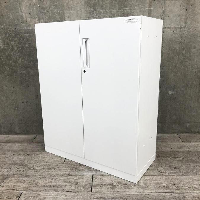 【収納物がひとめで分かる両開き戸タイプ!】■コクヨ(KOKUYO)製 エディア(EDIA)シリーズ 両開き書庫 ローキャビネット H1130㎜ ■天板・ベース付 ■ホワイト ■シリンダー錠【IB】