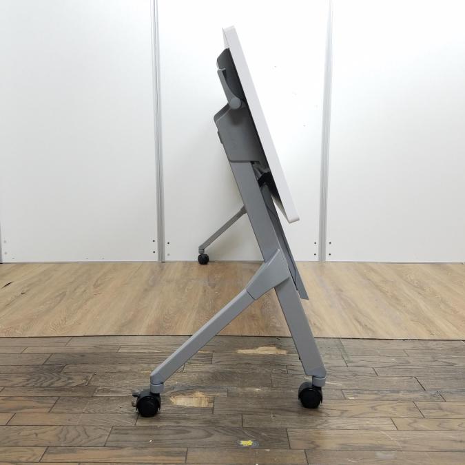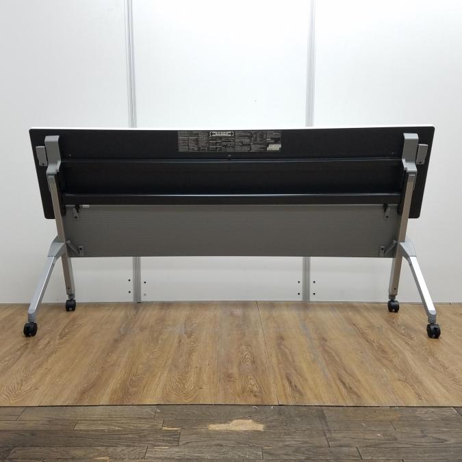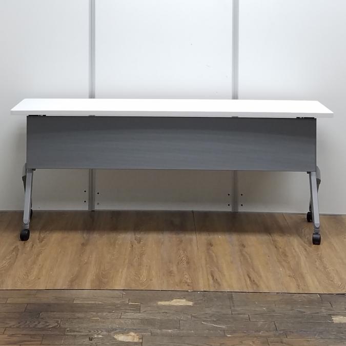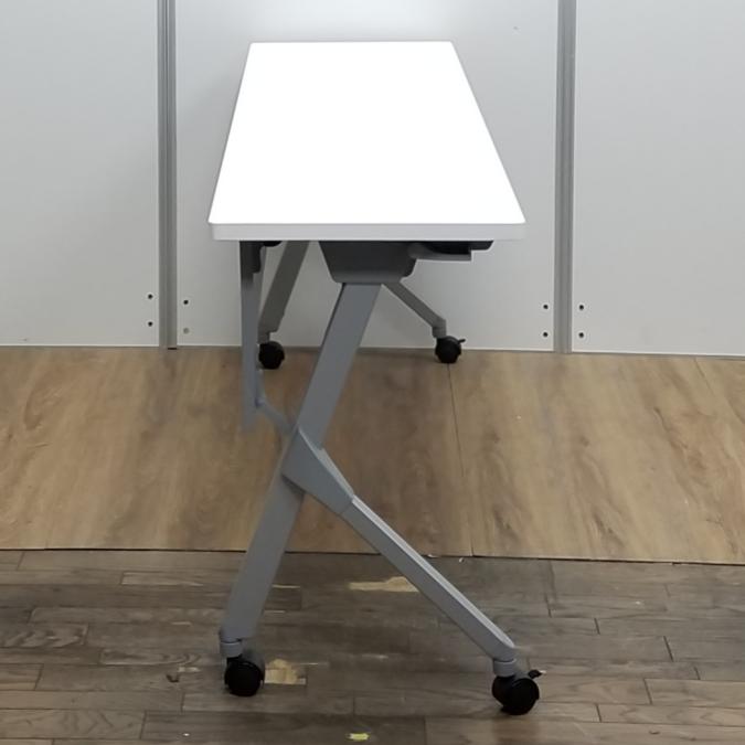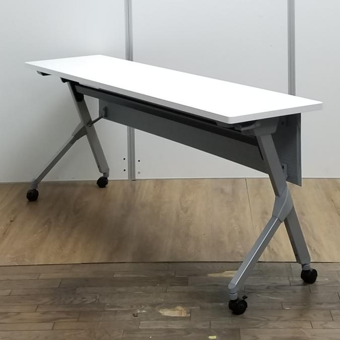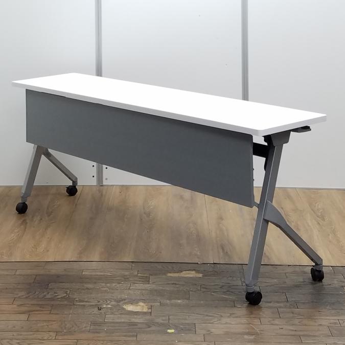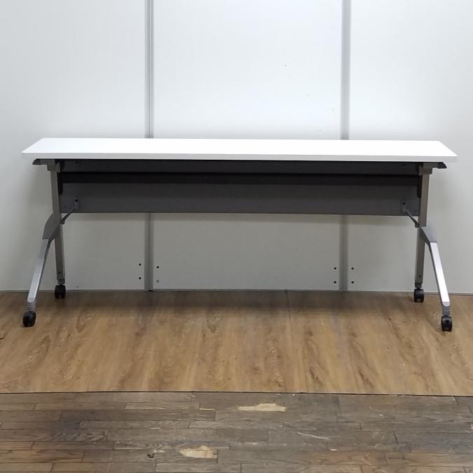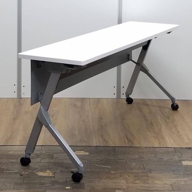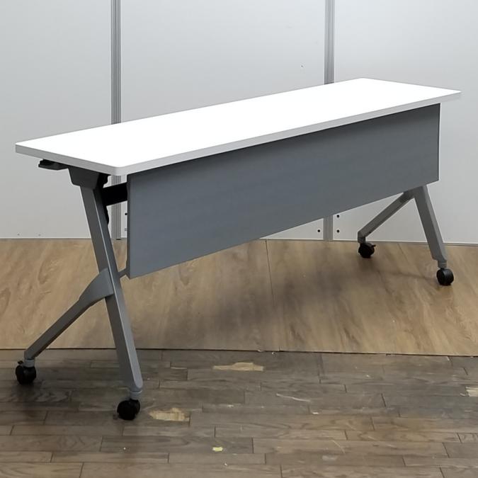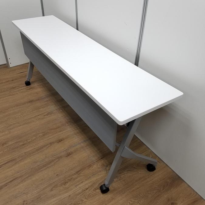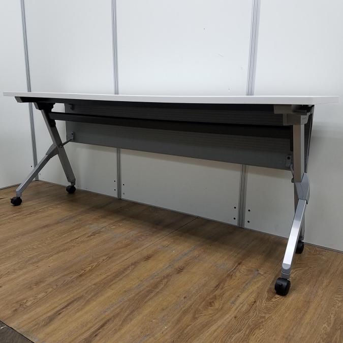 オカムラ製 フラプターシリーズ ホワイト W1800×450×H720サイズ 幕板パネル付 スムーズに移動できるキャスター付きテーブルを便利な折り畳み収納で! W1800サイドスタックテーブル!!- 京都東寺店