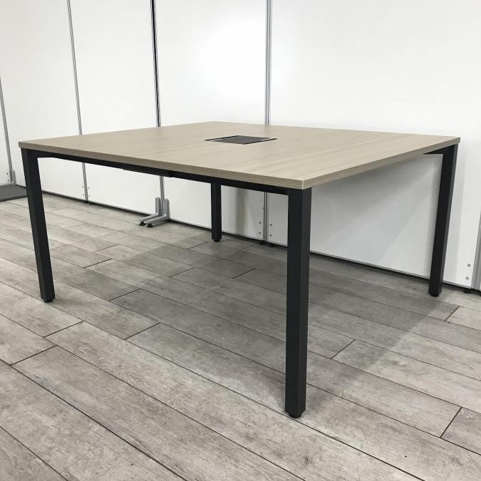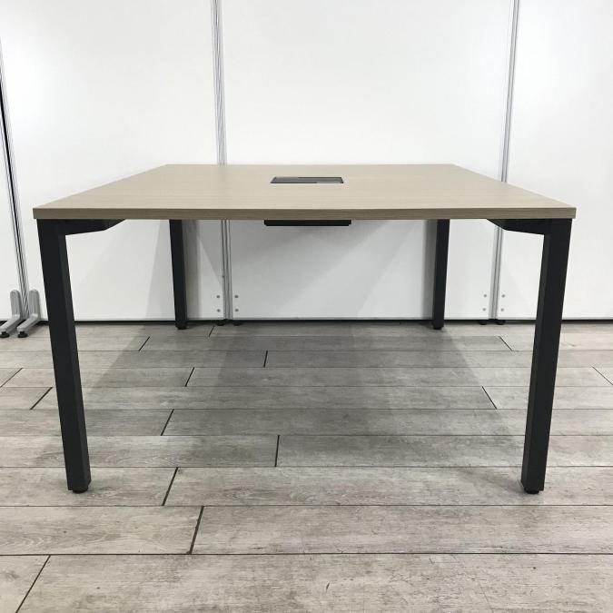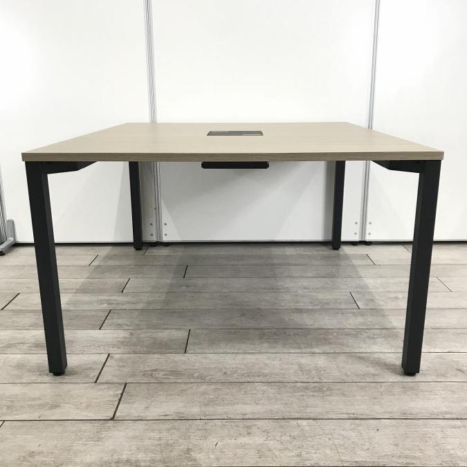 【ミーティングスペースやリフレッシュスペースに!人気のナチュラルカラー天板!】■ITOKI(イトーキ)製 アクトリンク ワークテーブル ミーティングテーブル ■幅1400×奥行1200㎜ ■木目ナチュラル×配線口・脚ブラック ■配線口- つくば店