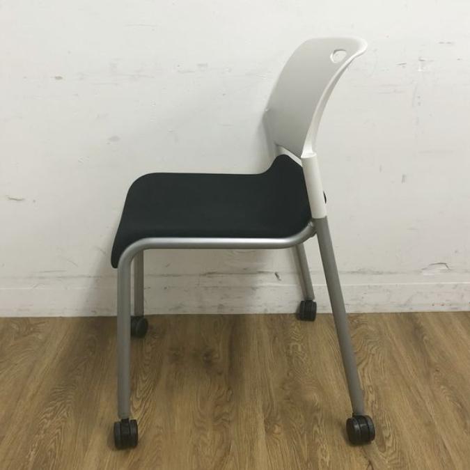 【レイアウト変更も楽々!キャスター付きの軽やかミーティングチェア!】ウチダ (UCHIDA) スタッキングチェア MF-270シリーズ キャスター付き 肘無し ■座面 ブラック×背面樹脂 ホワイト- 大阪・堺店