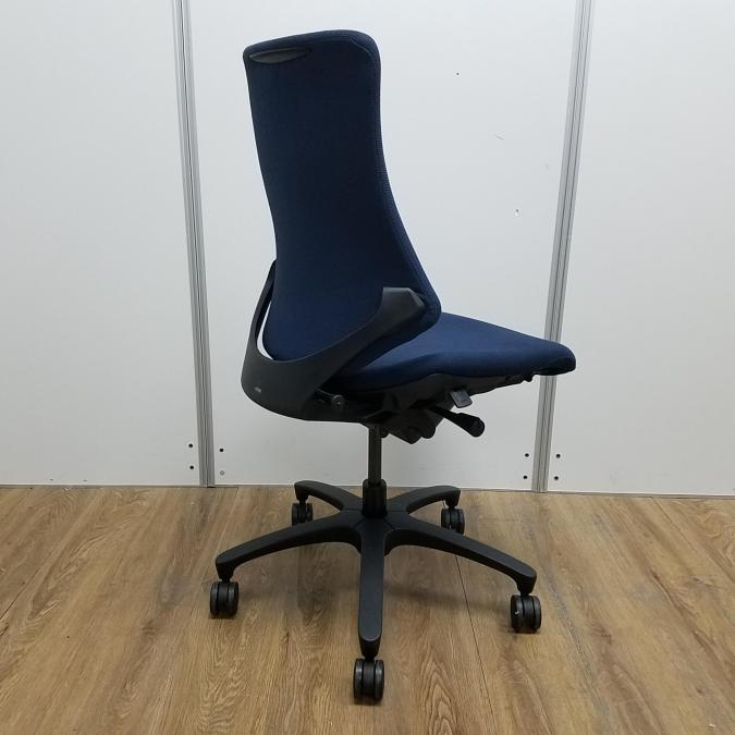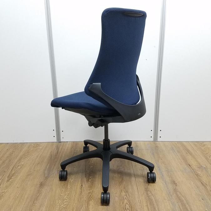 【商品入替のため、残り10脚限り】イトーキ製 エフシリーズ ネイビーブルー 背もたれクロスタイプ 厚めの背もたれクッションと独自のフォルムで体をサポート! 肘無しハイバックチェア!!- 京都東寺店