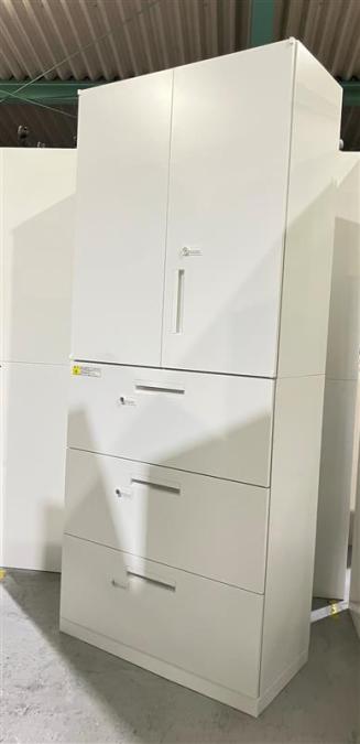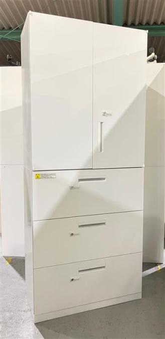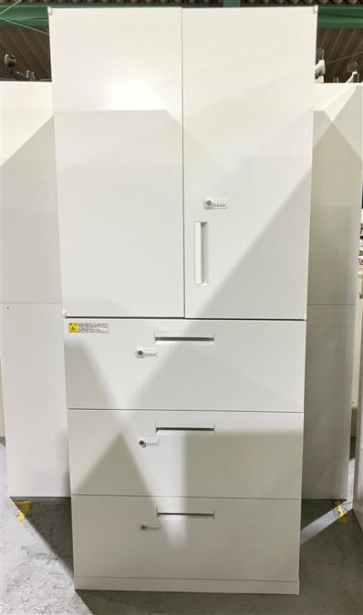 定番シリーズ!収納量抜群!観音開き+引き出しタイプのキャビネットセット! ■内田洋行/HS/ホワイト