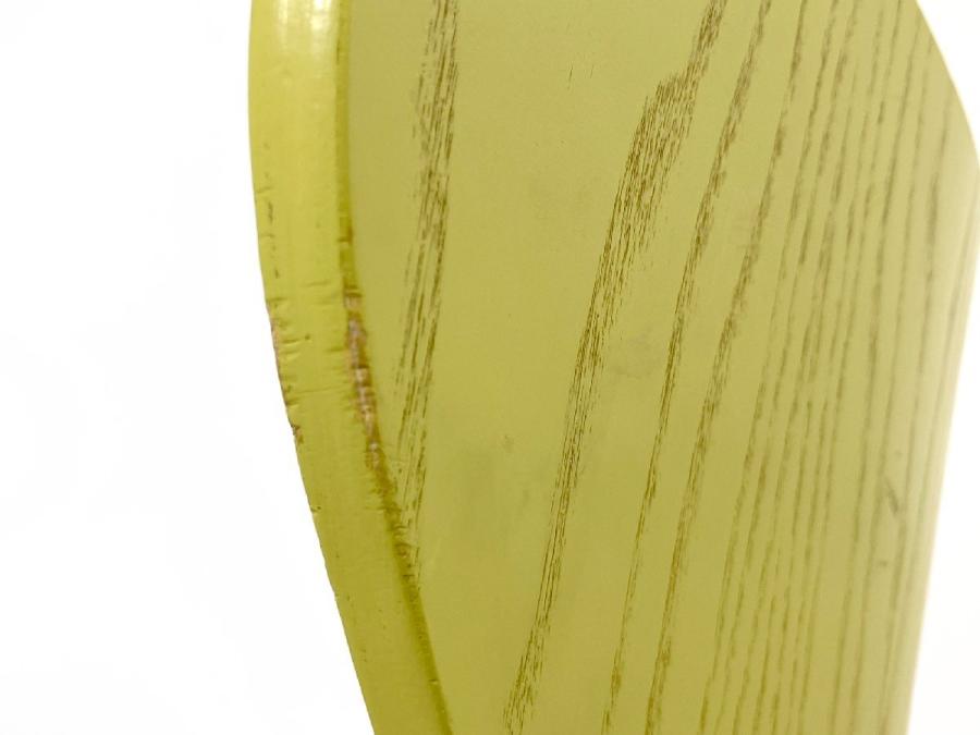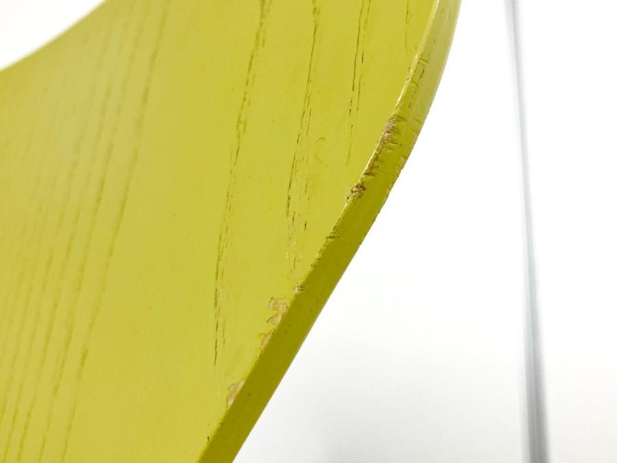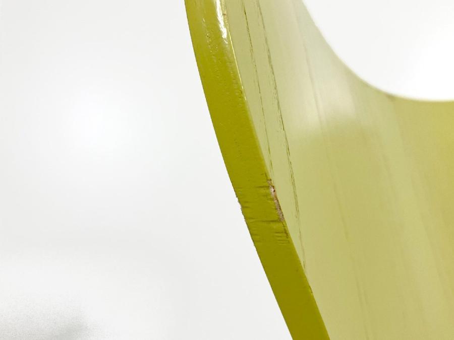 - かなり強い濃い黄ばみ・変色が商品全体にある。(例、座面・背もたれ、脚部等にある。)