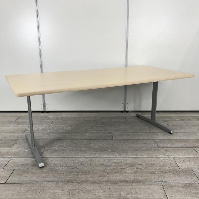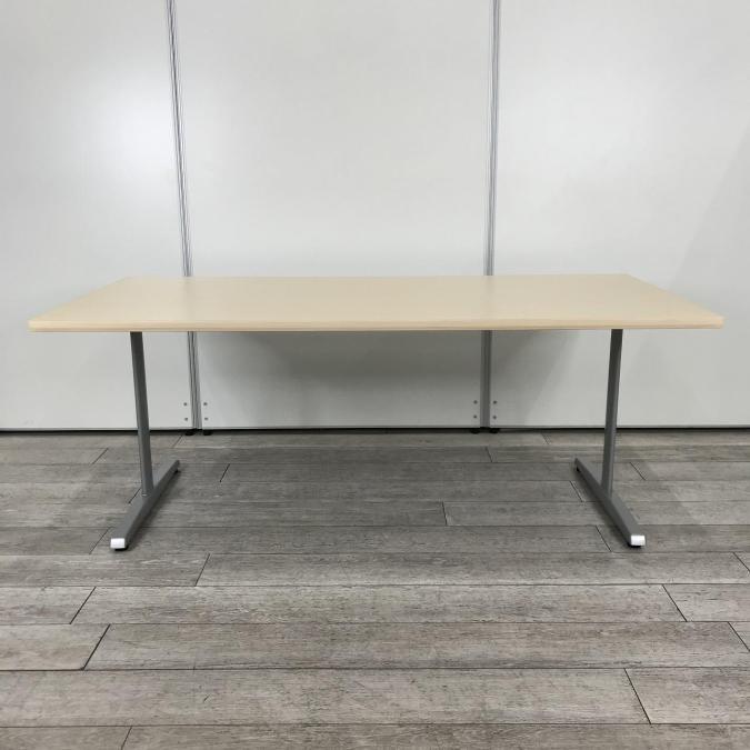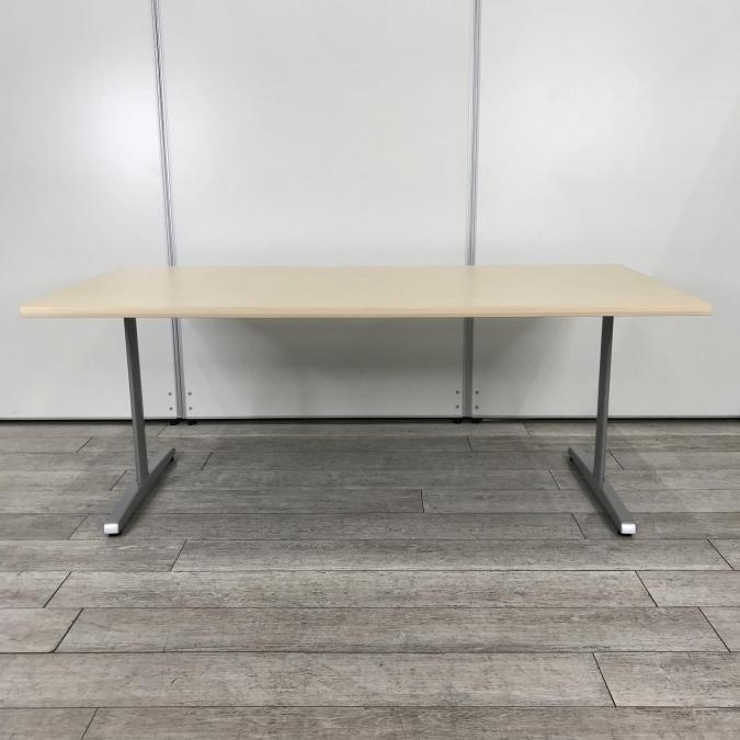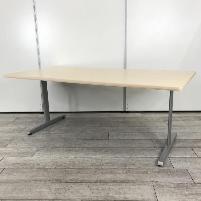 【打ち合わせや作業にオススメのミーティングテーブル!】■オカムラ(okamura) 8177シリーズ ミーティングテーブル 会議用 ■W1800×D900㎜ ■木目ナチュラル/シルバーT字脚- 品川・三田店