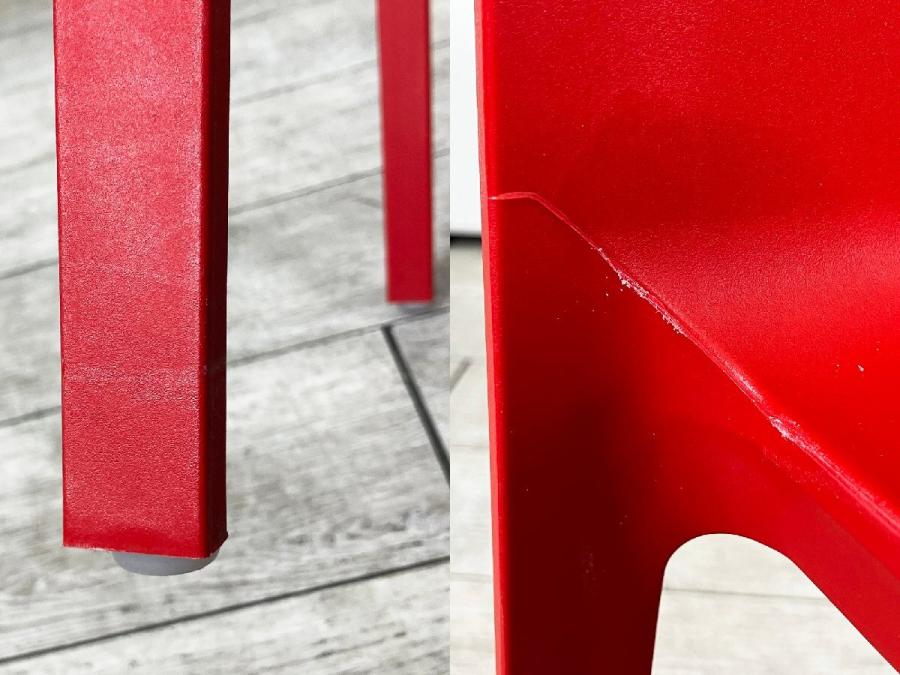 - 目立つ箇所あり傷・破れ・ほつれ・へたり・しわが多数または深い傷・破れ・ほつれ・へたり・しわが一部ある。※座面・背もたれ、シェル、脚部等にある。