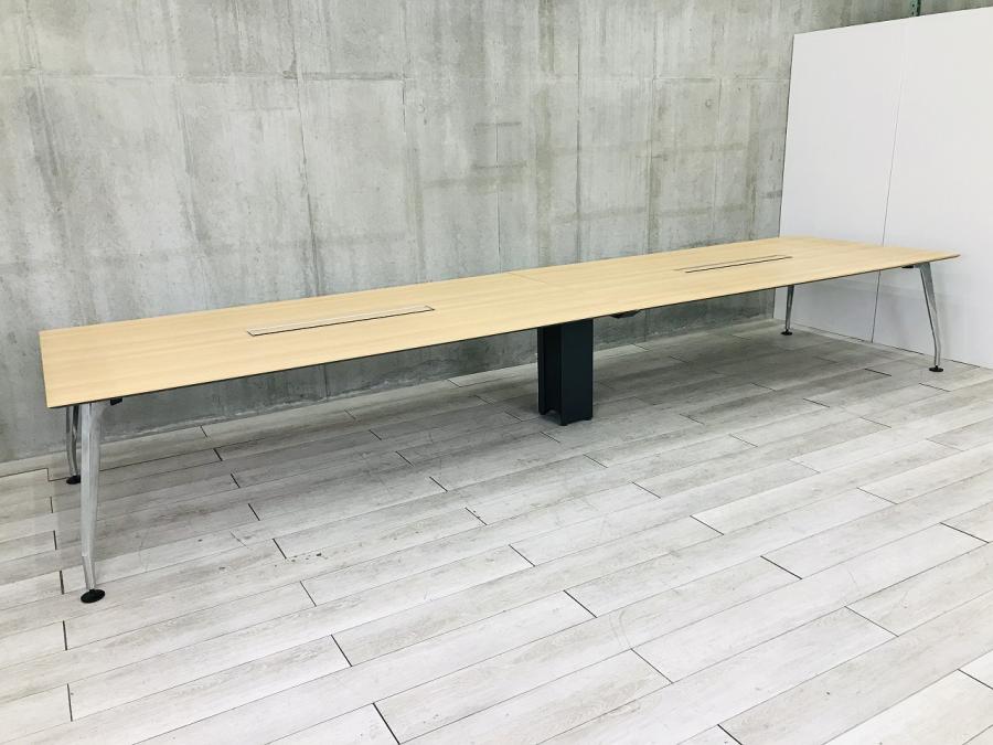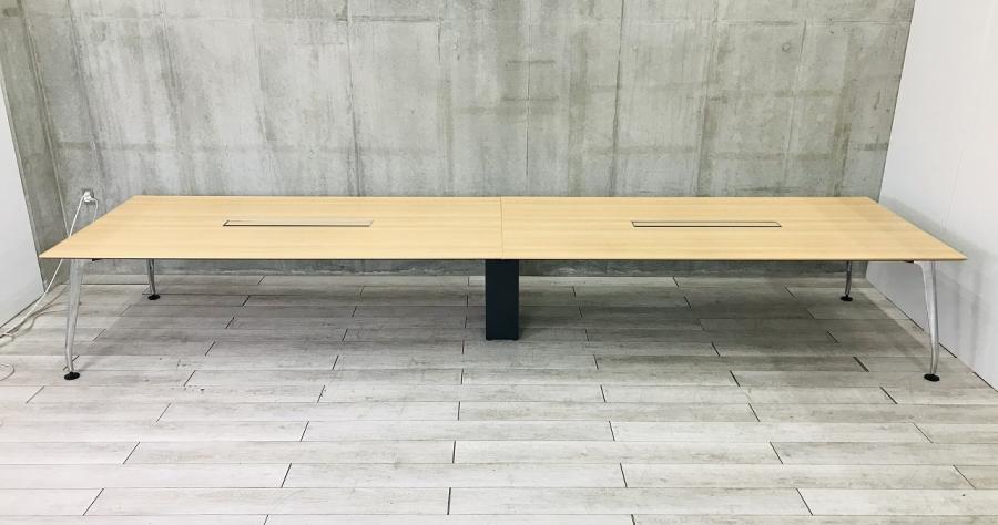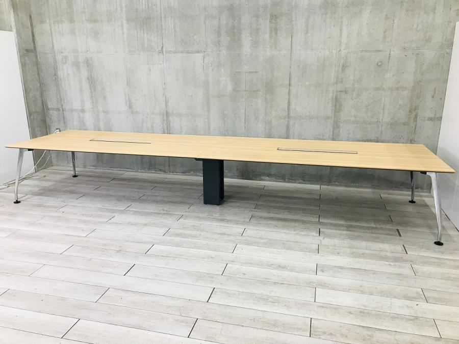 【会議や打ち合わせに重宝する幅4800㎜の大型テーブル!】■コクヨ (KOKUYO) 製 サイビ (SAIBI) 大型会議テーブル W4800×D1200㎜ (2枚天板) ■色:木目ナチュラル ■配線口- 仙台店