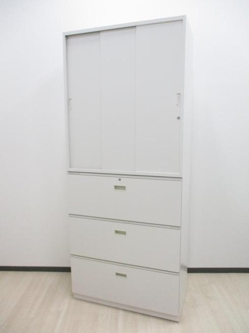 【引き違い+引き出しの組み合わせ 】◆イトーキ/シンライン 引き戸 3段ラテラル 本棚 収納 家具 リユース 九州最大級《オフィスバスターズ福岡博多店は、福岡を拠点として、日本全国へ中古オフィス用品・オフィス家具を提供しております》