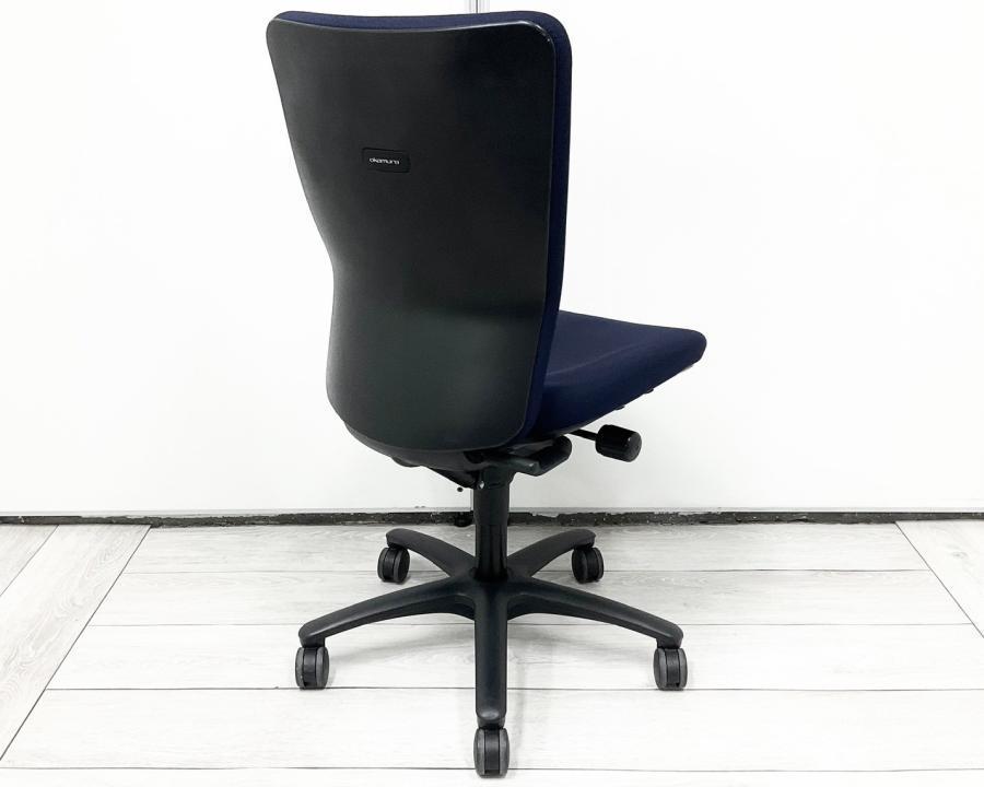 【在庫入替セール】オカムラ カロッツァ 肘無しチェア ゆったり座れるハイバックモデル ダークブルー×ブラックフレーム