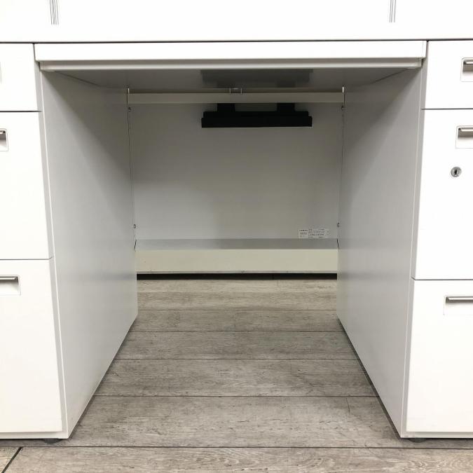 【在庫入替セール】【1台入荷】ウチダ スカエナ 両袖机 配線:S type ホワイト 十分な収納機能 カギ付き シリンダー錠