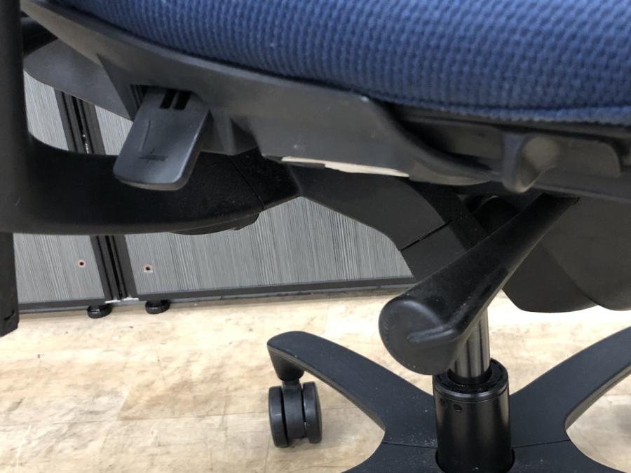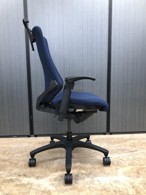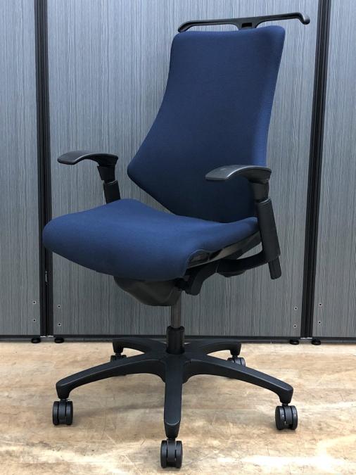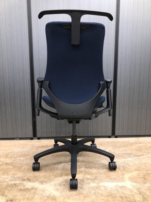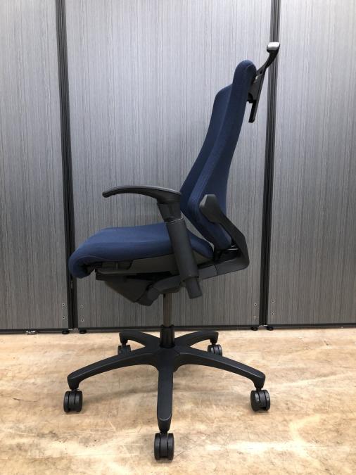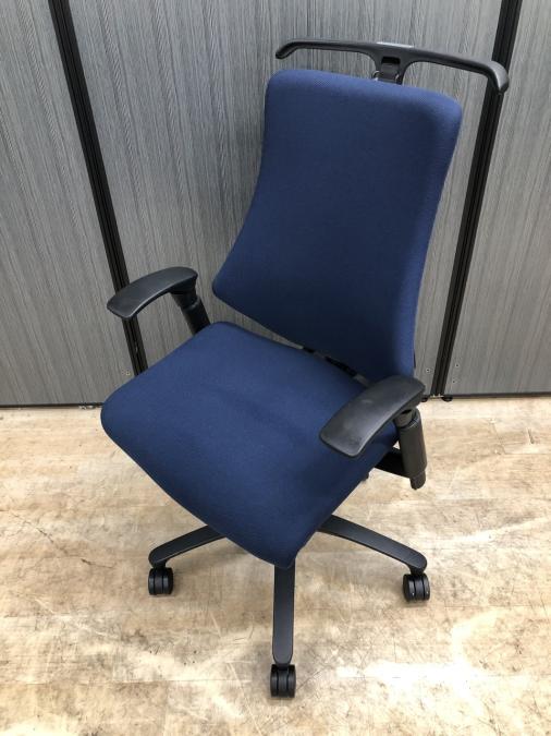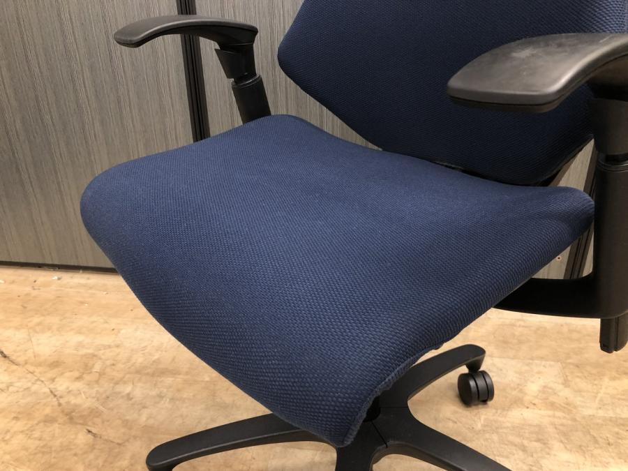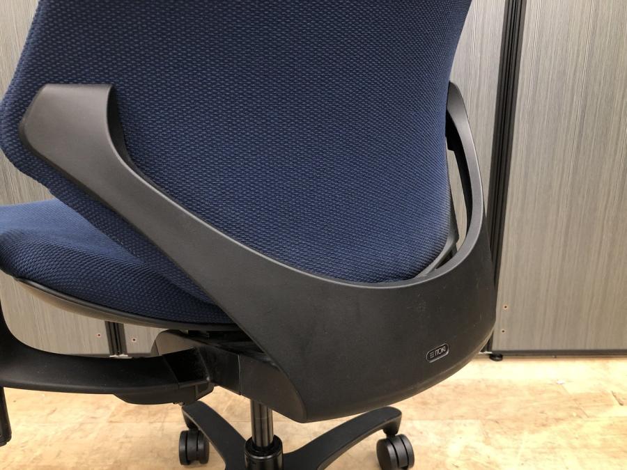 【在庫入替セール品!(本在庫限定価格)】☆肩から腕を開放する美しいフォルム! ■イトーキ製 エフチェア 可動肘付 ネイビーブルー ハンガー付 ■【姿勢の変化にフレキシブルに対応!】- 川崎店