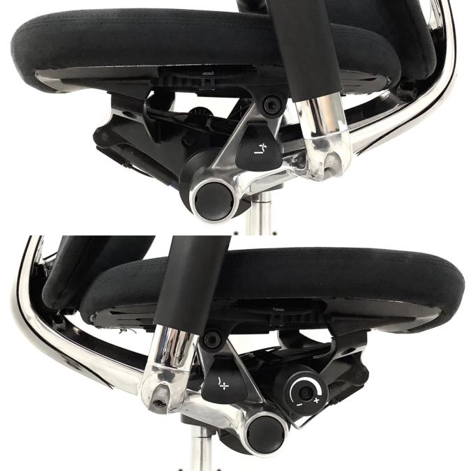 右手を座面下に下ろした位置にあるダイアルでお好みの強度に調節可能です。