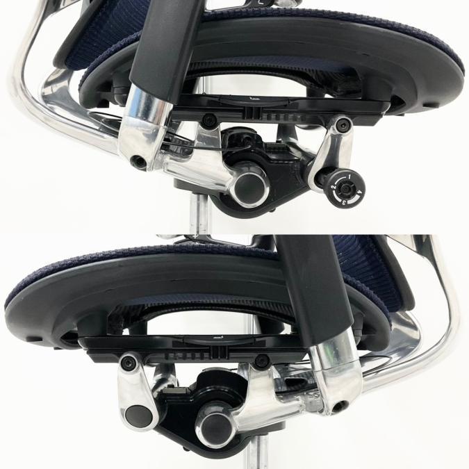 - 座面の前後スライド調整レバーで操作(前後50mm分調整で)できます。(グラデーションサポートメッシュタイプを除く)