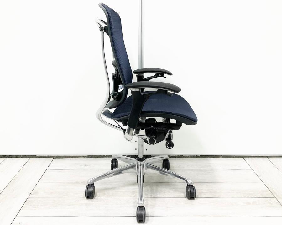 【オカムラ製の最高級チェアが残り1脚限りです!!】オフィスバスターズ 東大阪店 オカムラ製 コンテッサ シリーズ ダークブルー アジャストアーム※可動肘 背/座面メッシュ ランバー 世界で認められた革新的タスクチェア!人間工学に基づいた快適な座り心地を実現! 肘付きハイバックチェア!! 中古 外部倉庫品