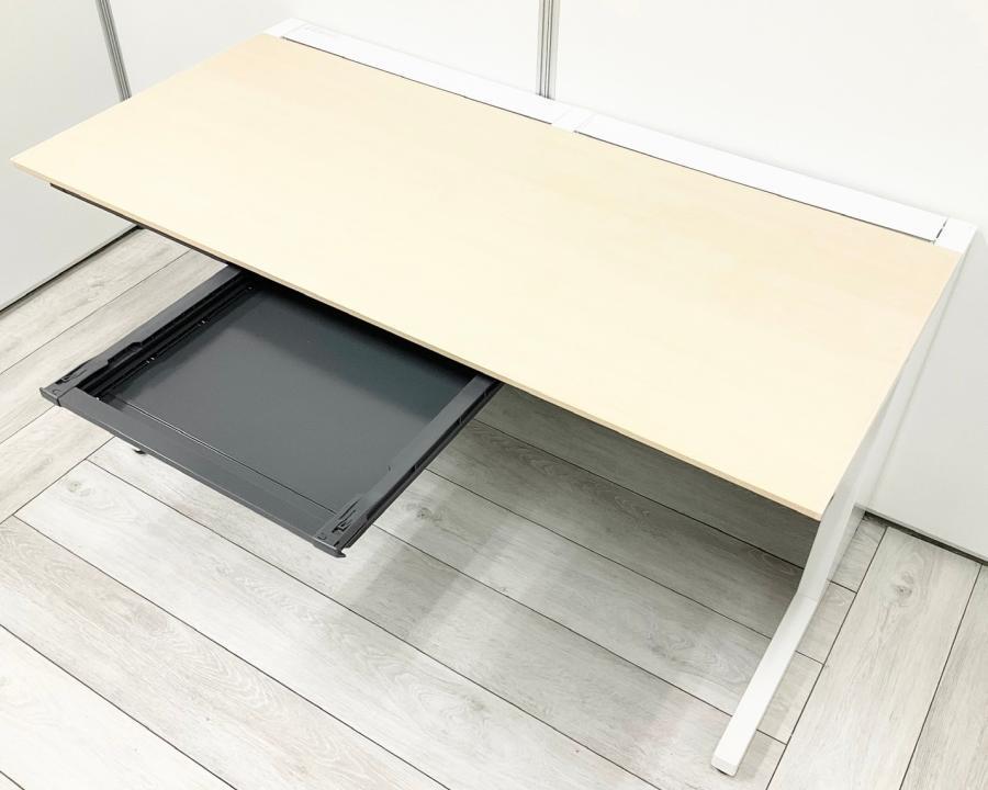 【定価約10万円】【人気のナチュラル天板でオシャレな平デスク!広く使える1400幅!】■KOKUYO(コクヨ)製 ISシリーズ 平デスク 引き出し付 ■ナチュラル天板×ホワイト脚- 仙台店