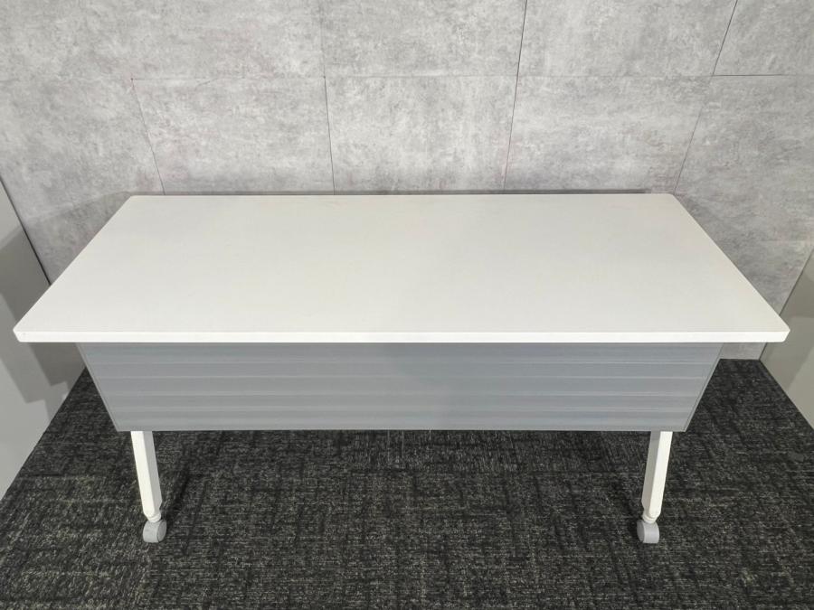 【西】オカムラ製 フラプターシリーズ ホワイト W1500/D450/H720サイズ キャスター 平衡収納 会議室・セミナー等に重宝されております! W1500サイドスタックテーブル!!