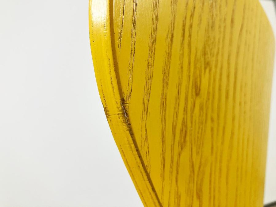 - かなり強い濃い黄ばみ・変色が商品全体にある。(例、座面・背もたれ、脚部等にある。)