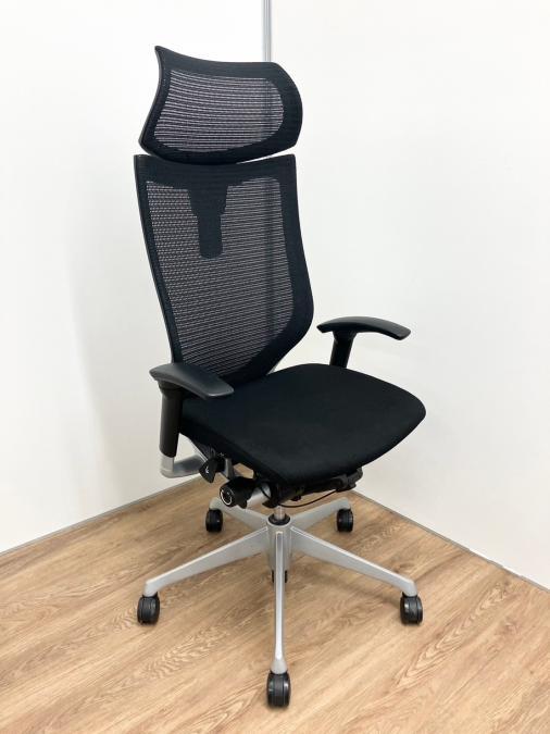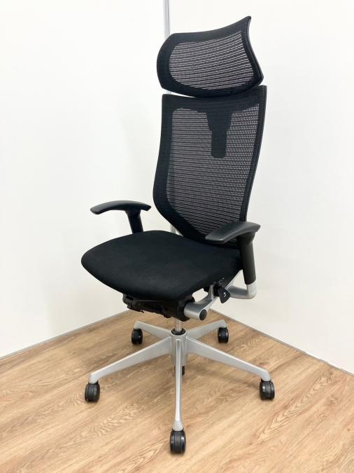 【長時間の着座でも疲れにくい!ベストなポジションが得られる先進設計!】■オカムラ バロンチェア 肘付 ブラック ハイバック シルバーフレーム ■良い椅子は腰を守る投資です!【Okamura Baron】