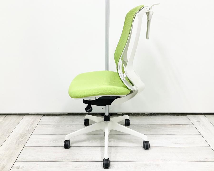 オカムラ製 シルフィ ライムグリーン ブラックフレーム 背面メッシュ ハイバック ハンガー付 樹脂脚 前傾チルト機能付き! オカムラ製品で最も人気を集める高機能メッシュチェア! 肘無しハイバックチェア!!