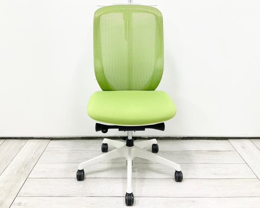 オカムラ製 シルフィ ライムグリーン ブラックフレーム 背面メッシュ ハイバック 樹脂脚 前傾チルト機能付き! オカムラ製品で最も人気を集める高機能メッシュチェア! 肘無しハイバックチェア!!