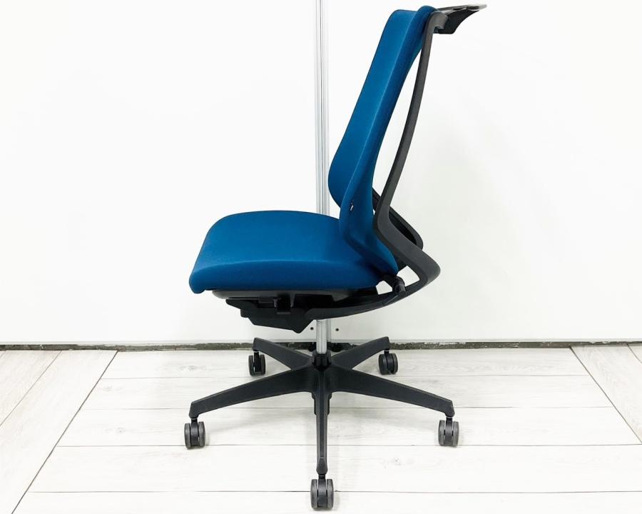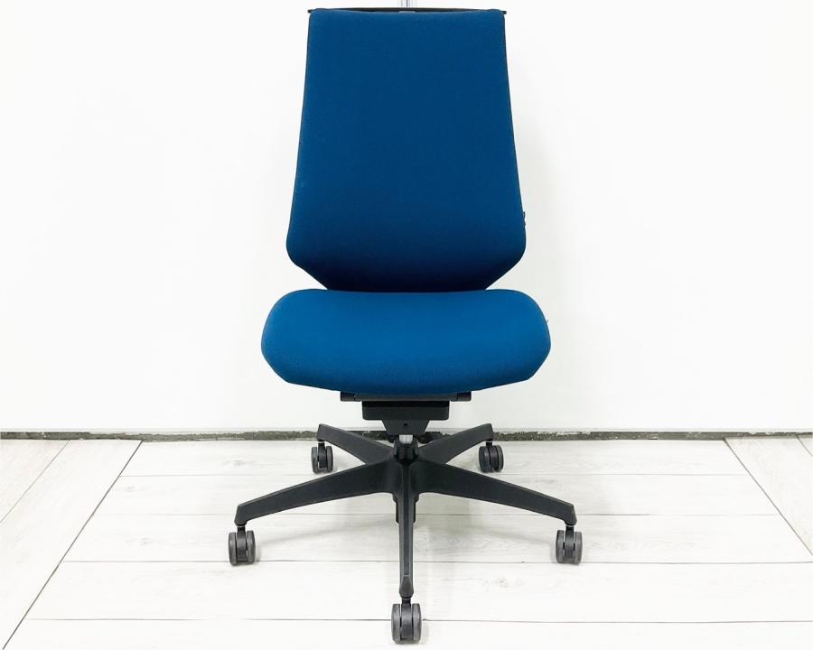 【在庫入替セール】コクヨ デュオラ 肘無しモデル クッションタイプ ブルー×ブラックフレームの定番のカラーリング コートハンガー付き ※背もたれに破れ有り【T9】