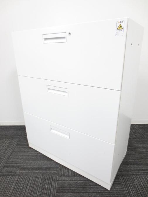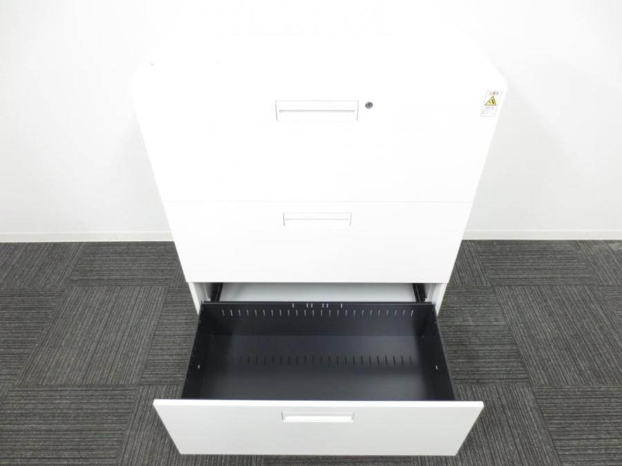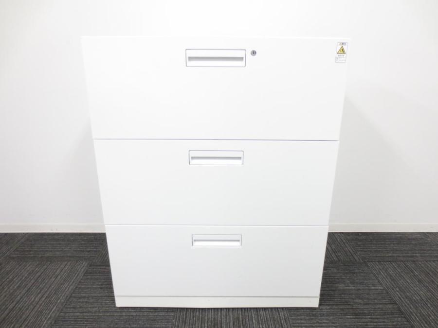 【4台入荷】【収納力抜群の3段ラテラル書庫!A4書類が大量に収納可能!】■コクヨ(KOKUYO)製 エディア(EDIA)シリーズ 3段ラテラル ローキャビネット ■天板/ベース付き ■ホワイト ■シリンダー錠