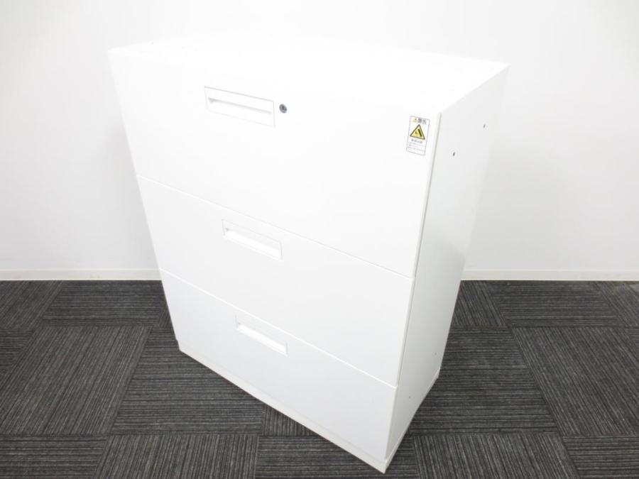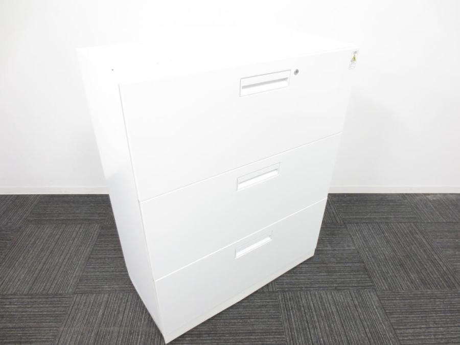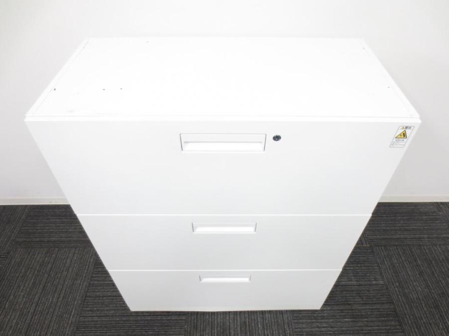 【2020年製】【収納力抜群の3段ラテラル書庫!A4書類が大量に収納可能!】■コクヨ(KOKUYO)製 エディア(EDIA)シリーズ 3段ラテラル ローキャビネット H1130㎜ ■天板・ベース付き ■ホワイト ■シリンダー錠【2511】弊社使用欄【A01044970】