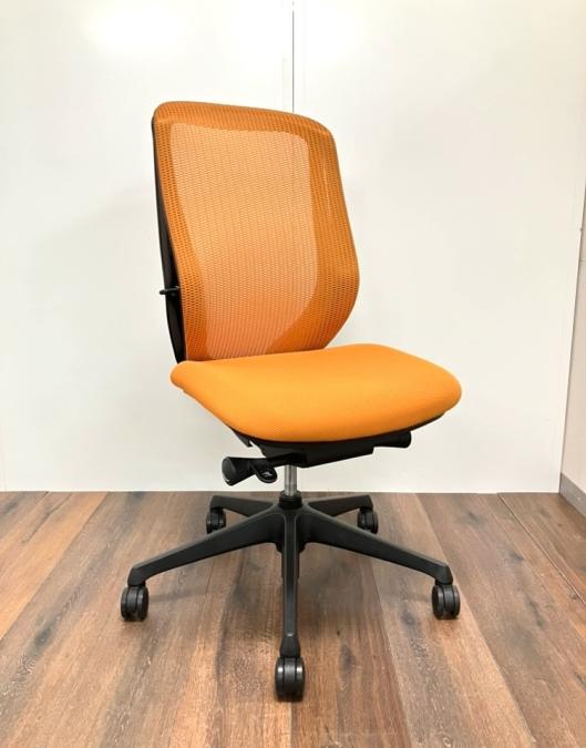 大人気/定番/オススメ オカムラ(okamura)製 シルフィーチェア ハイバック肘無し 背面メッシュ オレンジ (ブラックフレーム) ※千葉店撮影商品サーキュラーバリューCO2削減量の算出について