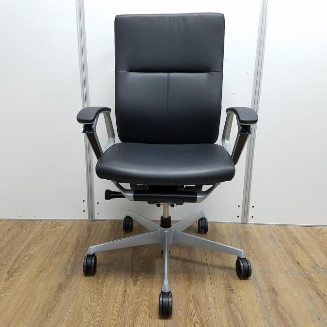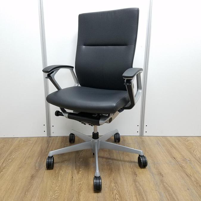 【滑らかで高級感あふれる座り心地が大人気!!】■オカムラ(okamura)製 デュークチェア(DUKE) ハイバック肘付き ■レザー張地 ■固定肘 ■ブラック【弊社使用欄:A01037767】【KN】