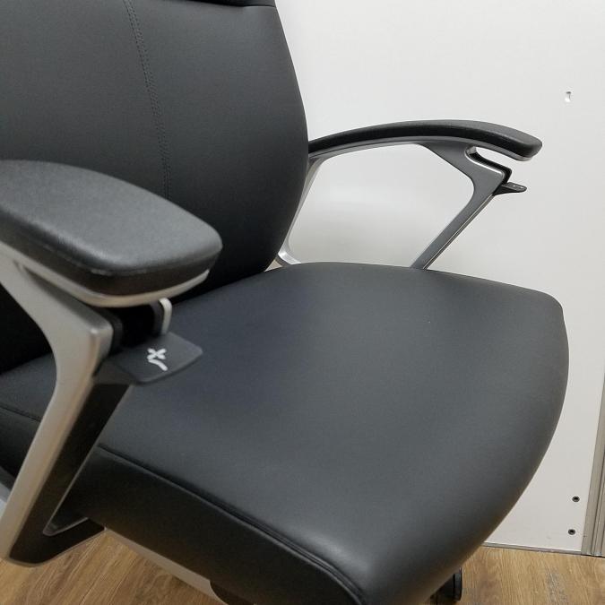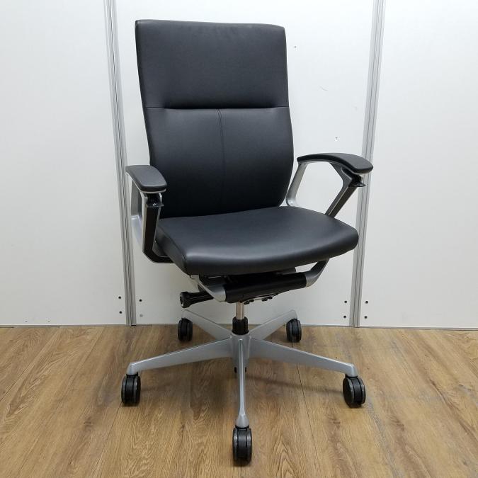 【滑らかで高級感あふれる座り心地が大人気!!】■オカムラ(okamura)製 デュークチェア(DUKE) ハイバック肘付き ■レザー張地 ■固定肘 ■ブラック【弊社使用欄:A01037767】