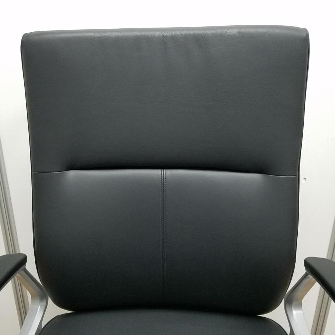 オカムラ製 デュークシリーズ ブラック レザー張地 固定肘 滑らかで高級感あふれる座り心地が大人気! 役員用事務椅子としても最適! 肘付きハイバックチェア!!- 京都東寺店