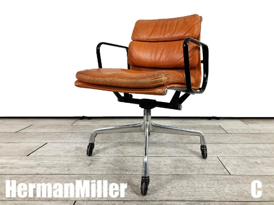 C)Hermanmiller ハーマンミラー イームズ ソフトパッドチェア フォースターベース 4本足 70S ヴィンテージ 70年代 革張 ブラウン- デザイナーズ家具センター