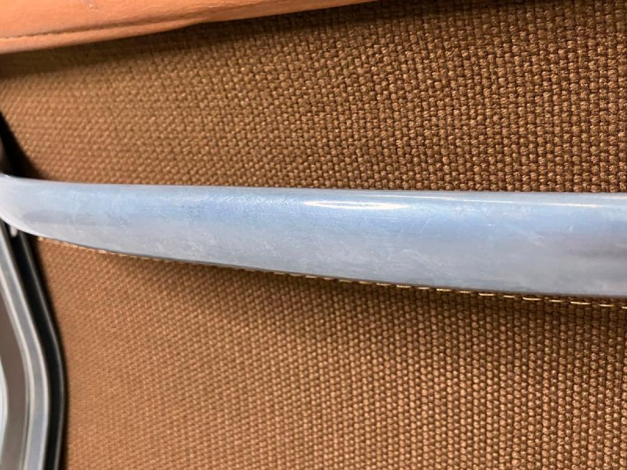 - かなり強い濃い黄ばみ・変色が商品全体にある。(例、座面・背もたれ、脚部等にある。)