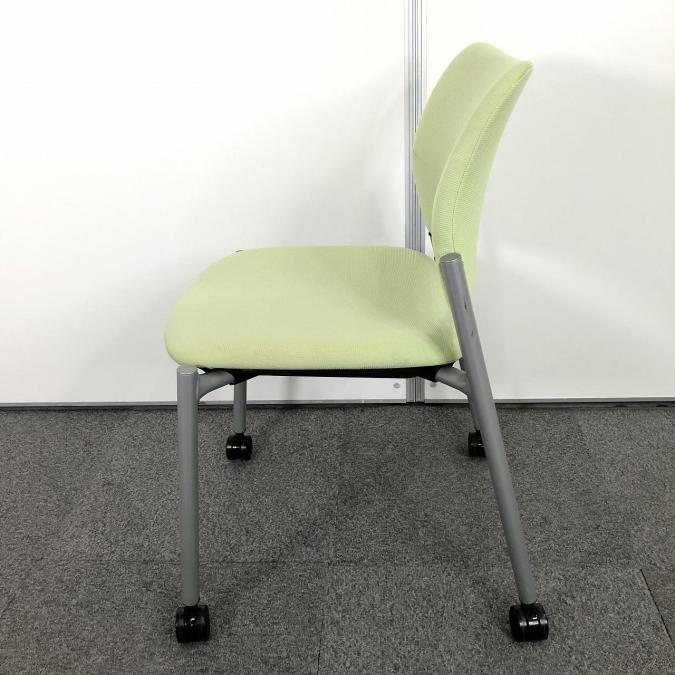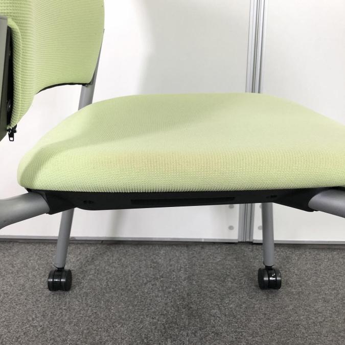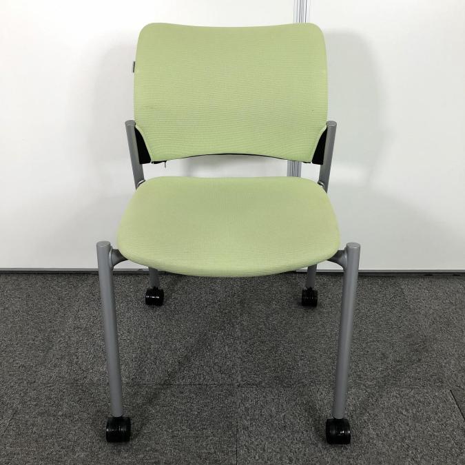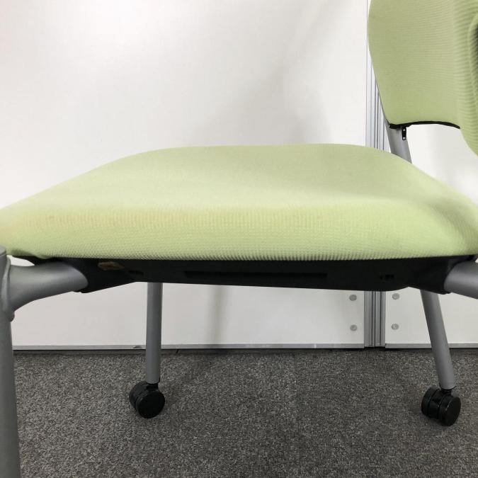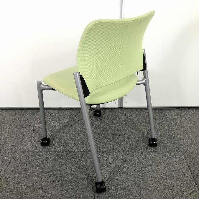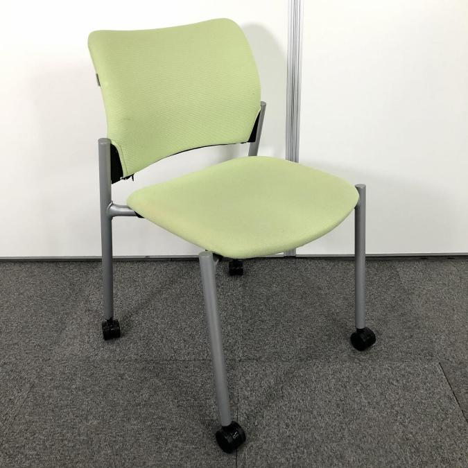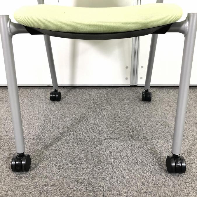 【定価約4万円】【快適なクッション性で長時間の会議も安心の座り心地!】■オカムラ製 8147 スタッキングチェア ■グリーン ■キャスター付- 在庫数