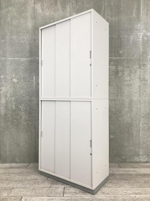 【幅800㎜】【3枚引き違い扉なので開閉スペースがいりません!省スペース化に貢献!】■イトーキ(ITOKI)製 シンライン(THIN LINE)シリーズ 上下引き違い書庫セット 3枚扉 ハイキャビネット ■ニューグレー ■シリンダー錠