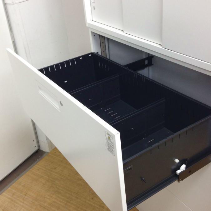 上置きは3枚引戸、下置きは3段ラテラル書庫の組み合わせとなっております。