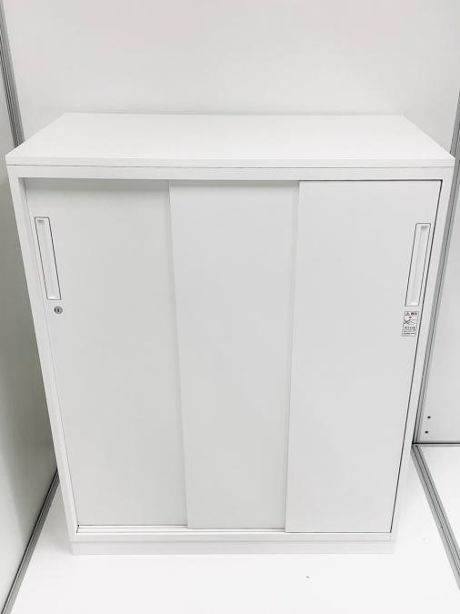 【スライド引き戸だから開閉スペースに困りません!KOKUYO定番人気シリーズが入荷!】■コクヨ(KOKUYO)エディア(EDIA)3枚引き違い書庫 ローキャビネット ■シリンダー錠 ■ホワイト- 大阪・堺店