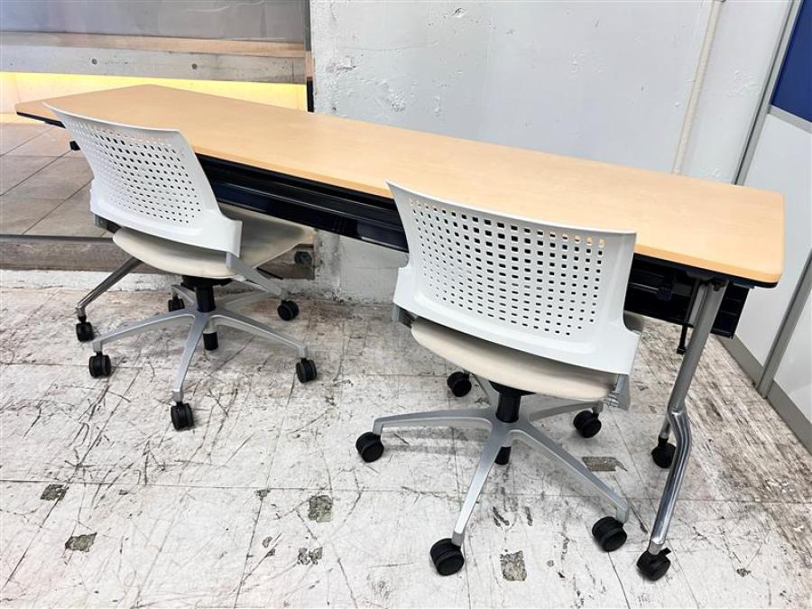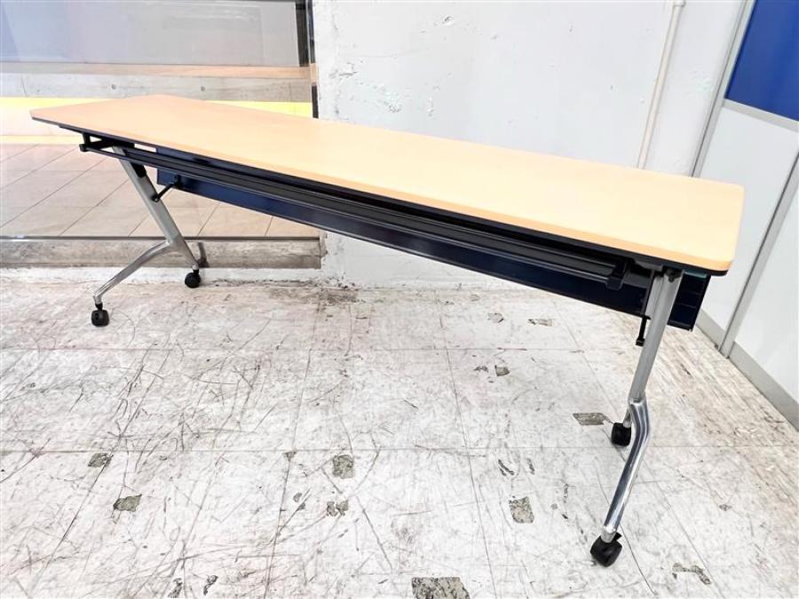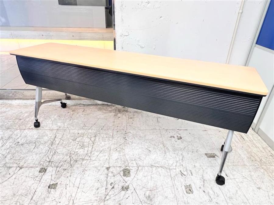 テーブル+チェアのセット!【2~3名様で使えるスタックテーブル入荷!キャスター付きで移動も楽々!】■UCHIDA(内田洋行)製 レガーレ サイドスタックテーブル ■幅1800×奥行450 ■幕板付き ■ナチュラル【天板跳ね上げ式でコンパクトに収納】- 在庫数