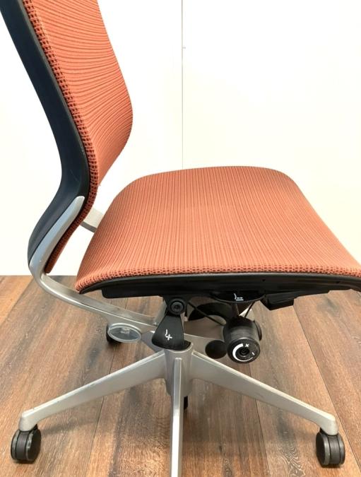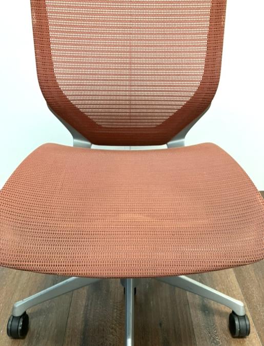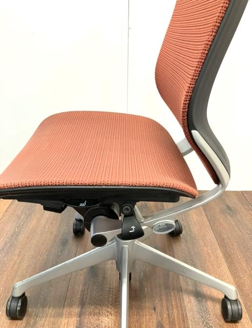 もちろん座り心地もコンテッサの直系ですから快適です。座面の素材はクッションとメッシュの2タイプあります。私、個人的には座面の中心部分でも外側でもテンションが変わらないクッション素材が、足を閉じても開いても快適なので推しです!"