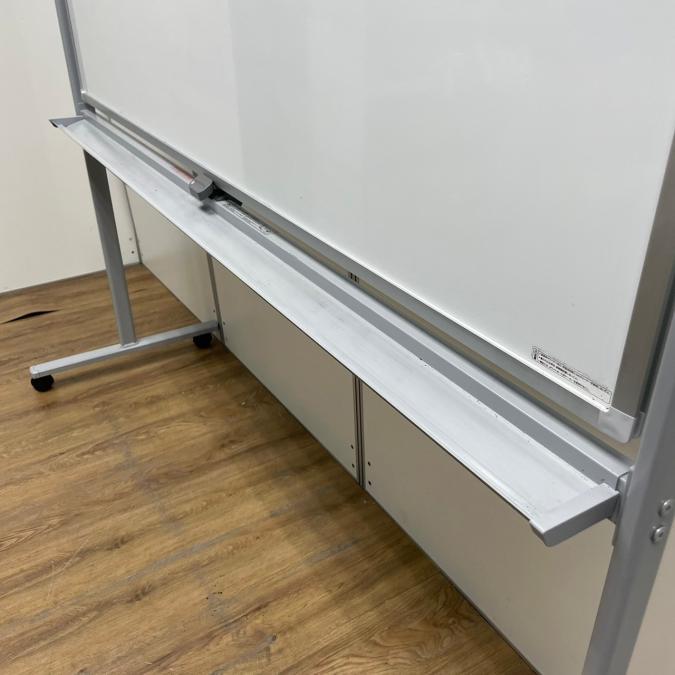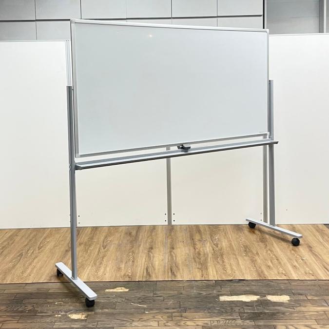 【ミーティングの必需品!キャスター付きで移動らくらく!】■両面ホワイトボード 脚付き ■ホワイト ■キャスター付 ■ボード:W1810xH910㎜- 大阪・堺店