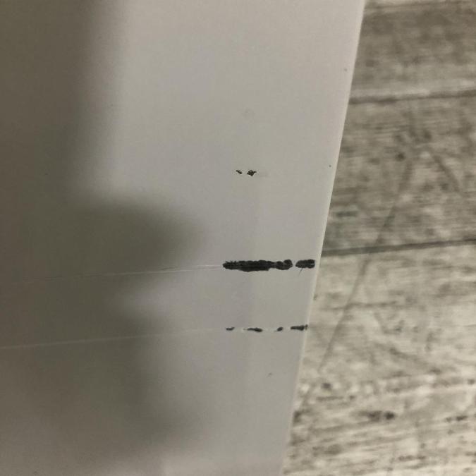 - あり黄ばみ・変色が広い範囲にうっすらある、、広い範囲にある。(例、天板、正面、背部、サイド部分にある。)
