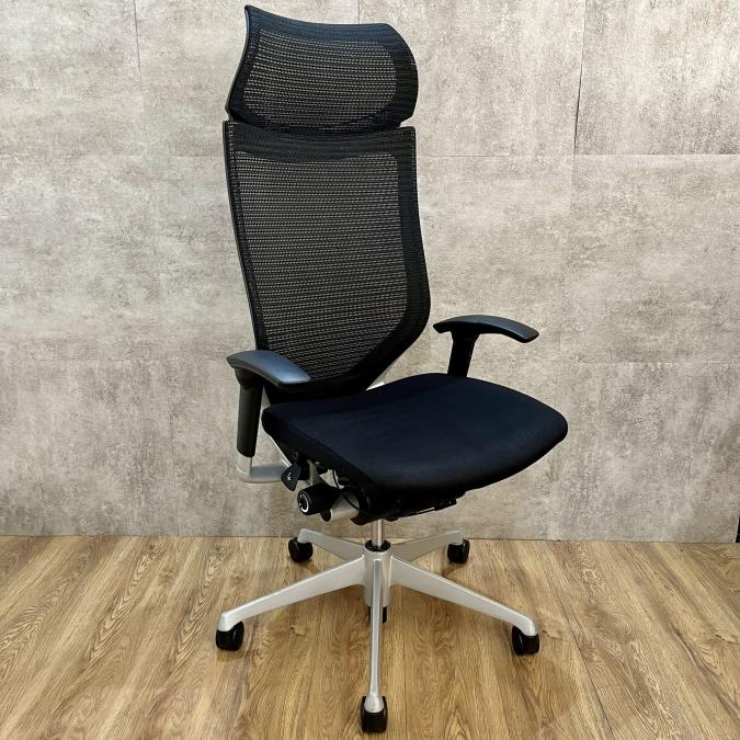 【長時間の着座でも疲れにくい!ベストなポジションが得られる先進設計!】■オカムラ バロンチェア 肘付 ブラック ハイバック シルバーフレーム ■良い椅子は腰を守る投資です!【Okamura Baron】
