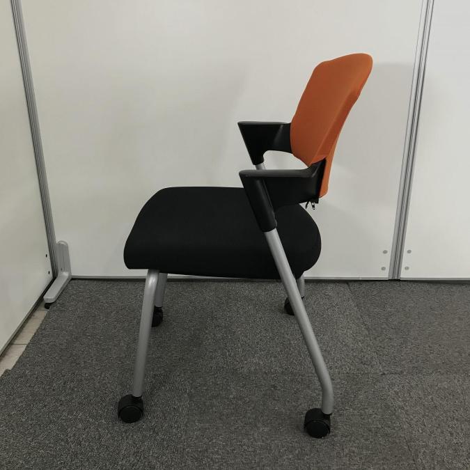 【シンプルスマートなスタッキングチェア!】■コクヨ(KOKUYO) プロッティ(Protty)チェア スタッキングチェア ミーティングチェア ■肘付き キャスター付き ■オレンジ【2505】弊社使用欄【A01018053】